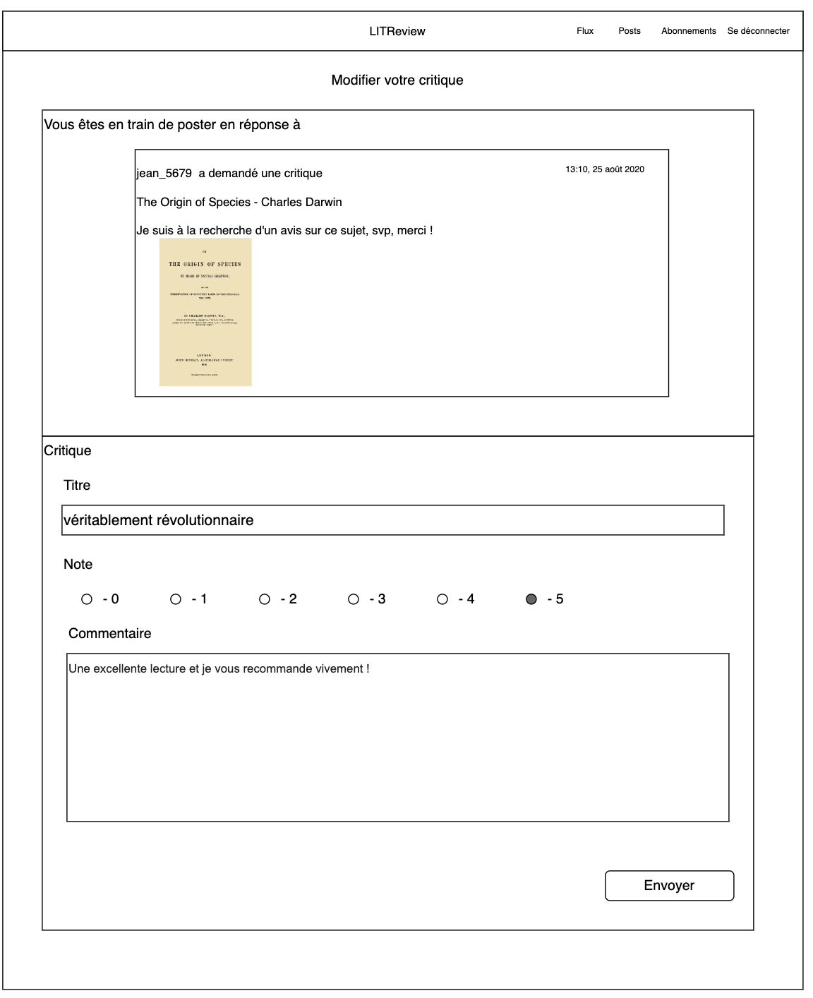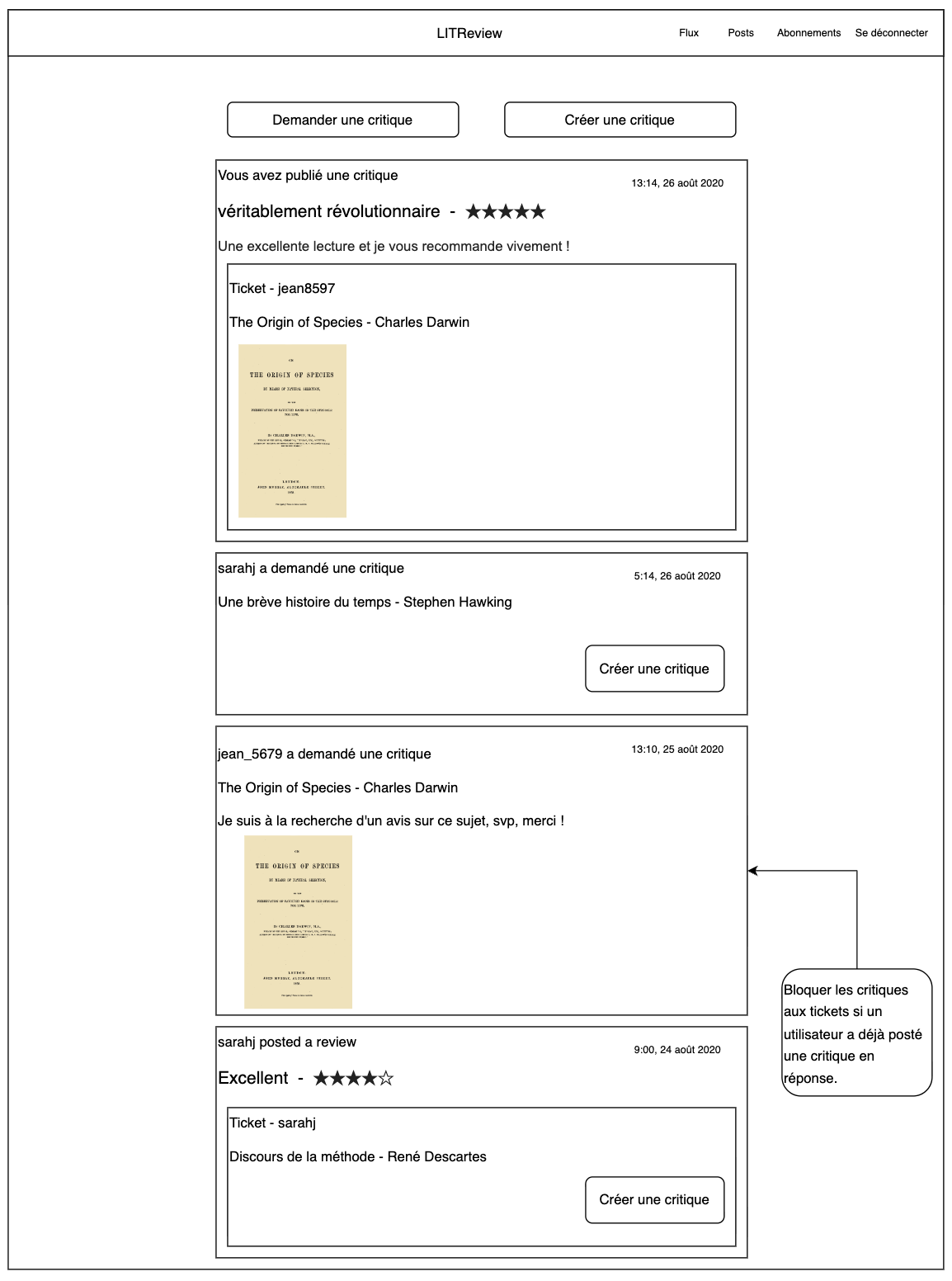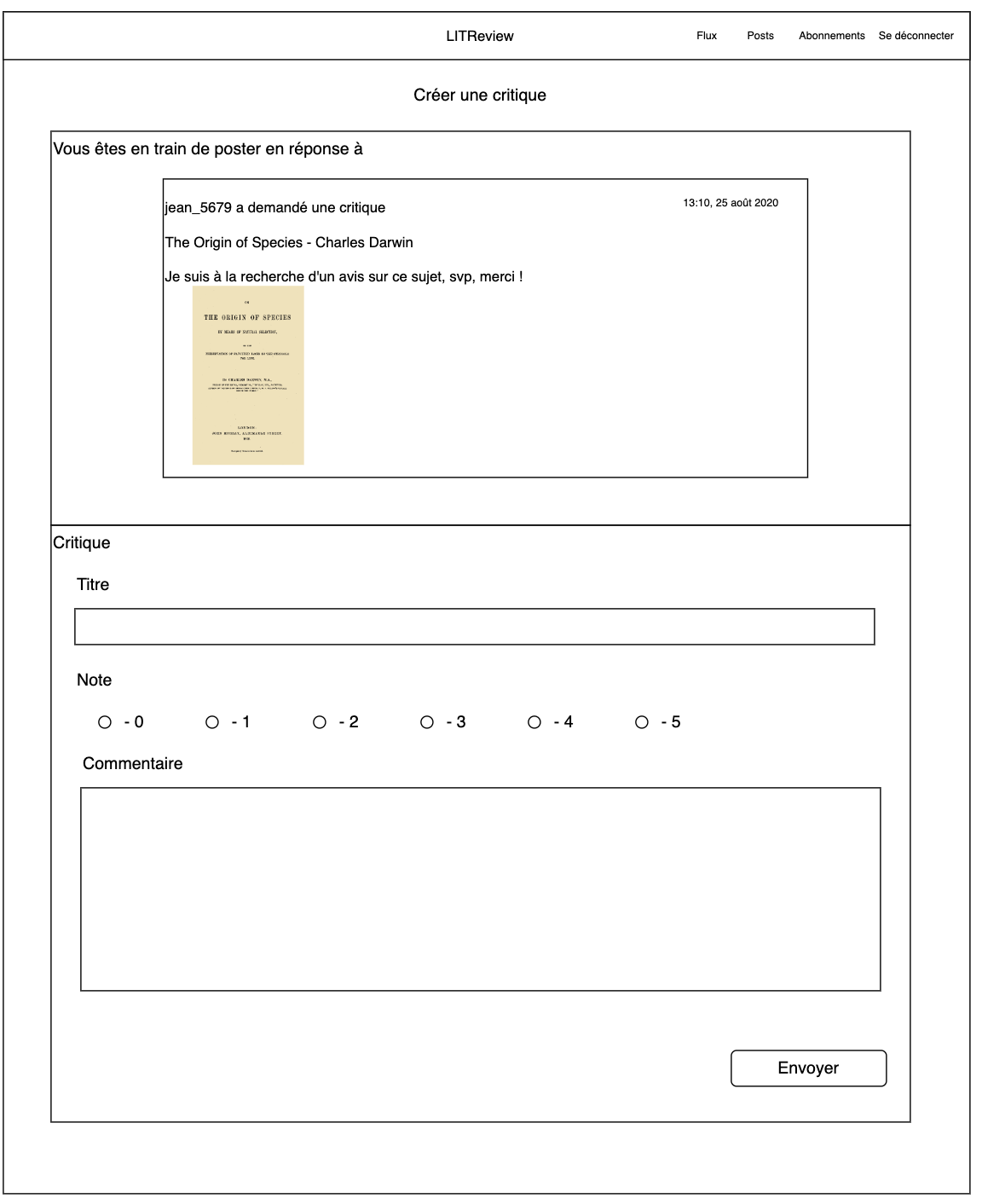 - Analyse du cahier des charges de LITRevu pour définir les fonctionnalités clés : publication, demande et consultation de critiques.