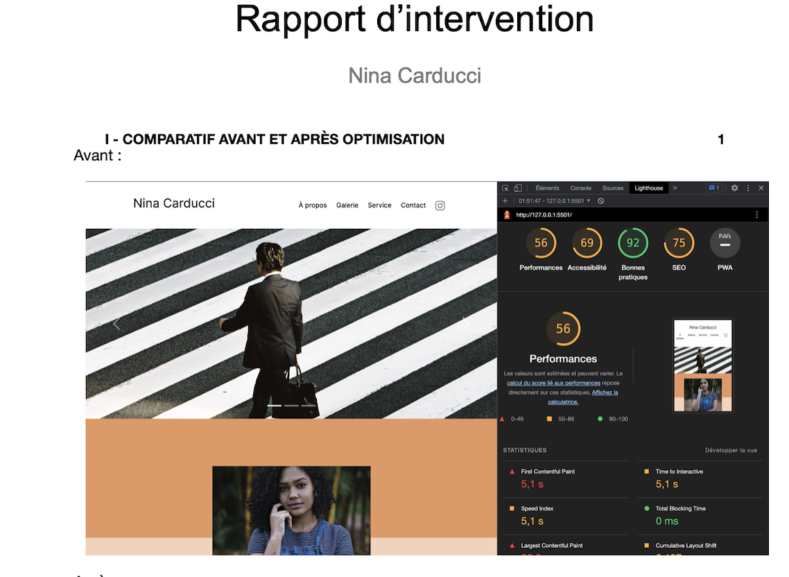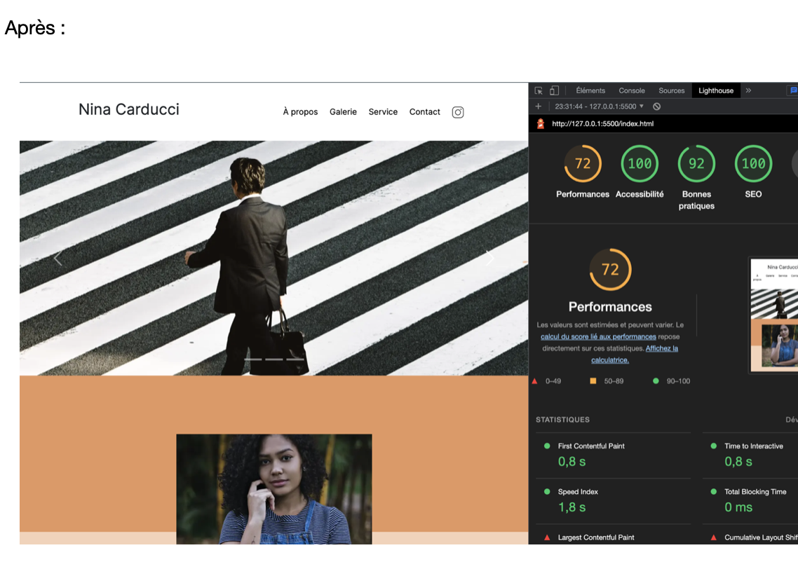 Optimisation SEO, performance et accessibilité du portfolio de la photographe Nina Carducci.