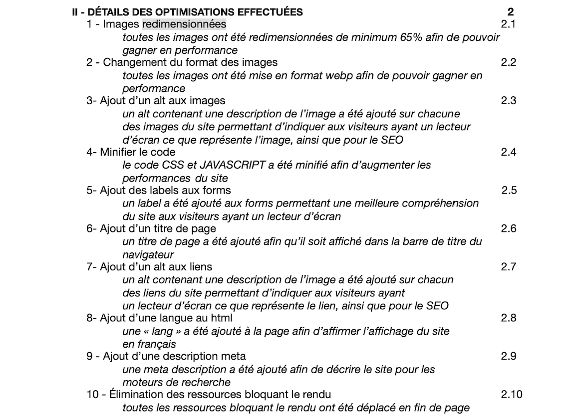 - Livraison d’un rapport d’optimisation détaillant les actions et leurs impacts.