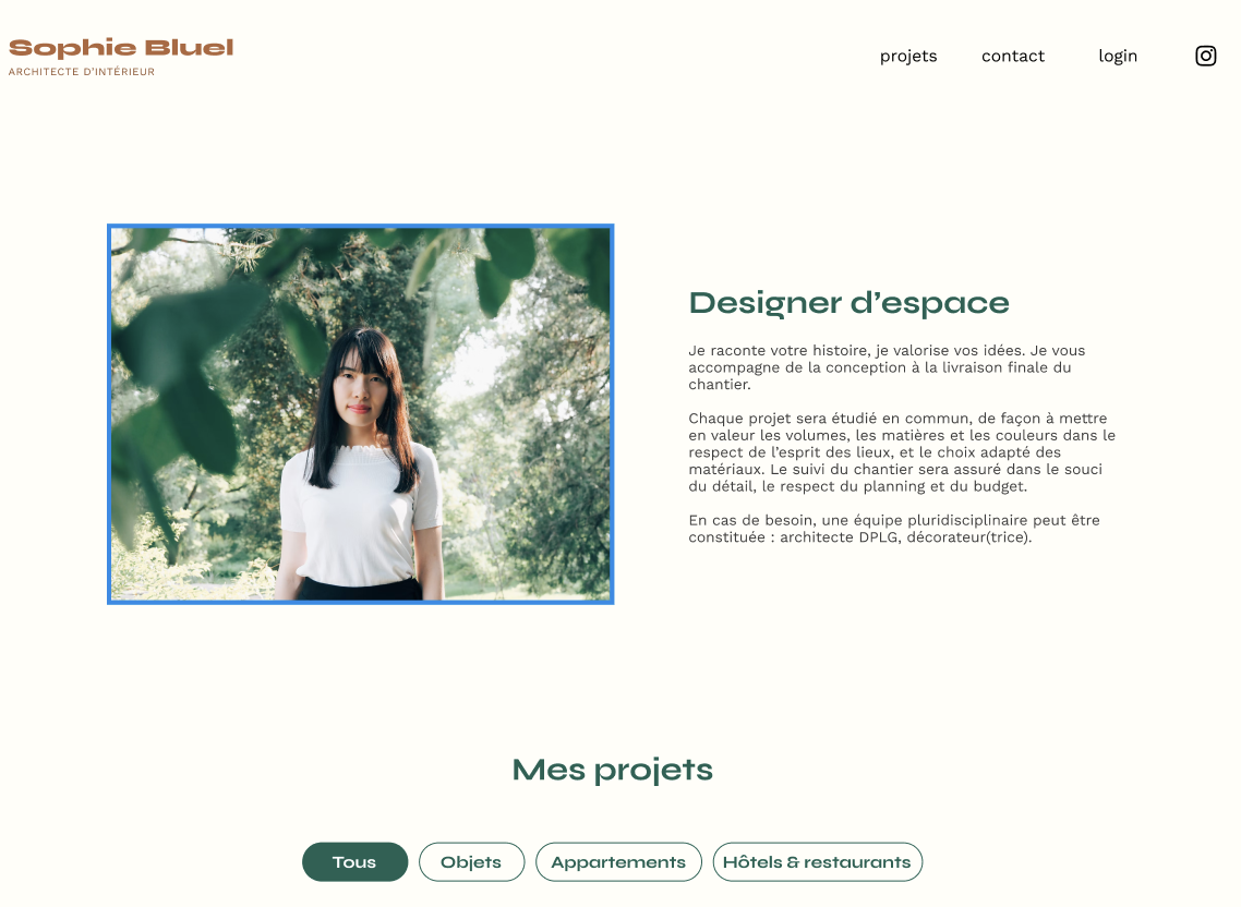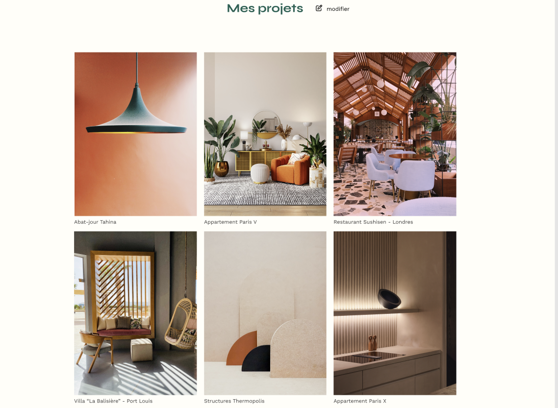Développement du portfolio d’architecte d’intérieur.