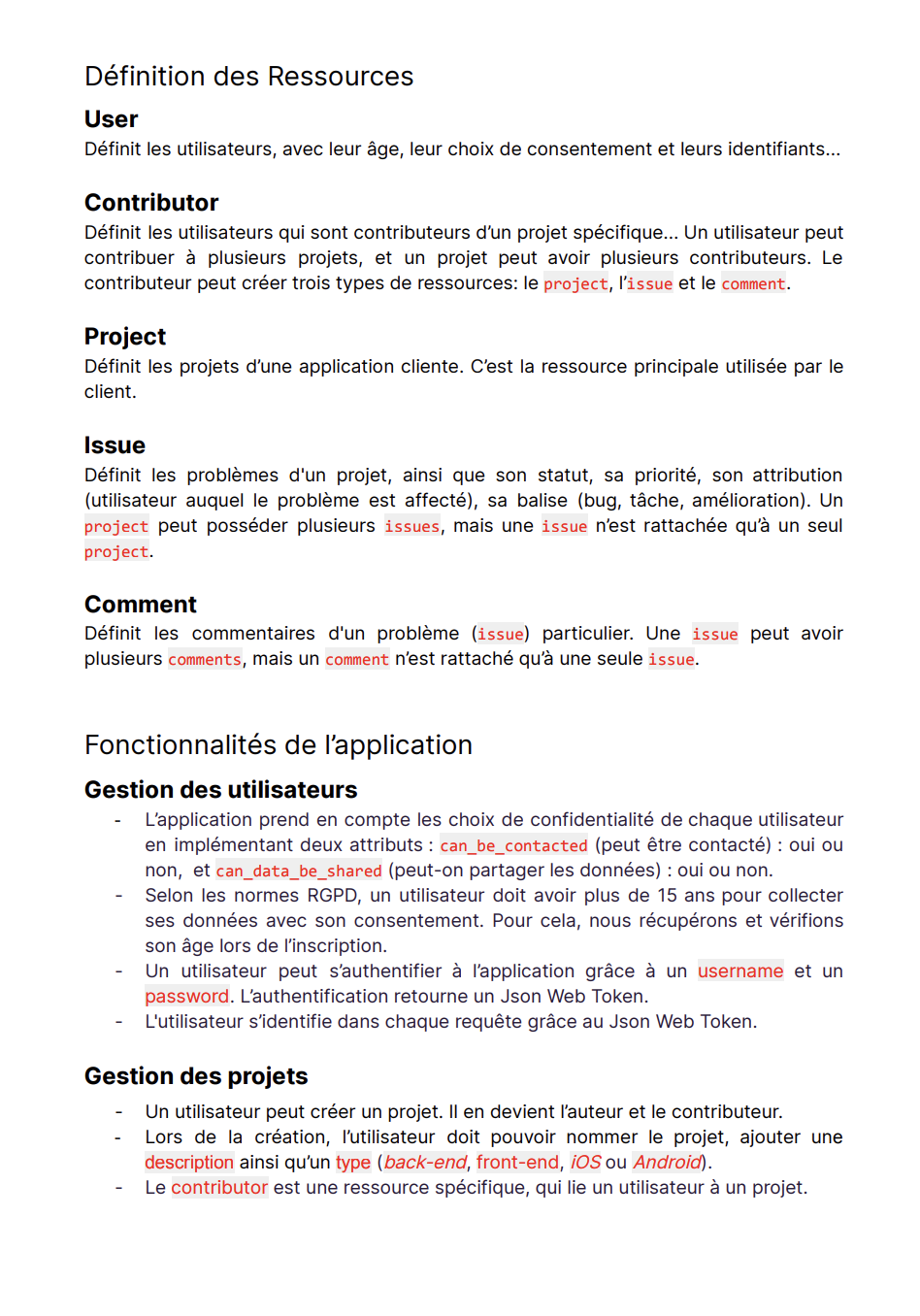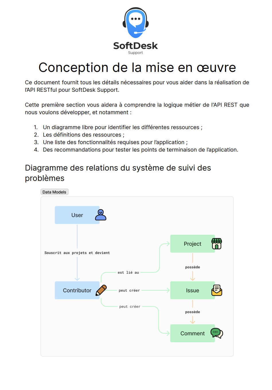 - Création d’une API RESTful avec Django REST Framework pour le back-end de SoftDesk Support.